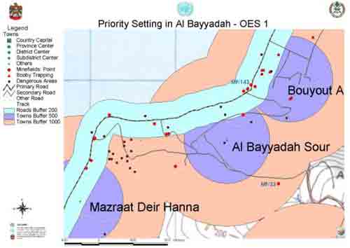 around affected areas. Using IMSMA and a GIS, buffer zones of