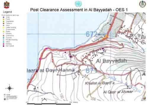 (Booby Trapping, CBU,SHA ,UXO, IF position) and STATUS (Cleared,