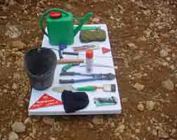 These include a tool bag containing pliers and various vegetation cutting tools, and a bucket and watering can. As stated above many of these items are standard trade and gardening tools.