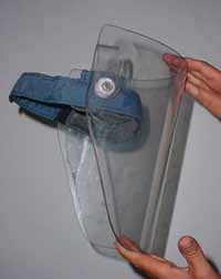 The purpose of the visor is obviously to protect the wearer (de-miner) from suffering facial and cranial damage immediately following the accidental detonation of a UXO or mine. The visor issued should be of such a design and standard as to satisfy the in-country safety standard as gazetted by the MACC SL or the National Demining Office (NDO) authority. Weight and comfort are aspects to be considered, as is the ballistic strength and durability of the actual visor itself. In the de-mining role the de-miners head, neck and throat can be less than a metre from the mine while prodding, for instance. Therefore the full face visor and the cranial visor offer a more consistent and reliable form of protection for the de-miner as the base of the visor butts against the neck collar and chest of the apron. The visor must be able to protect the wearer from the mine debris, but also from the implement being used coming back on him/her, as well as from stones and dirt that will also be thrown up at the de-miner at velocity. As a result of continual modifications and improvements to the visor very few accidents have been recorded where the visor has failed. Improvements however are a continual process, as with all demining safety equipment.